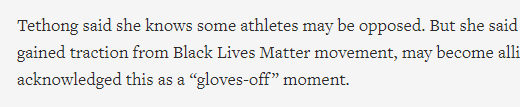 Tethong, AP’s sole exclusive source for their story headlined “AP Exclusive: Full-blown boycott pushed for Beijing Olympics,” said the coalition is trying to recruit athletes that have publicly supported the Black Lives Matter movement and that their method of exerting pressure on the International Olympic Committee is by pressuring its sponsors.